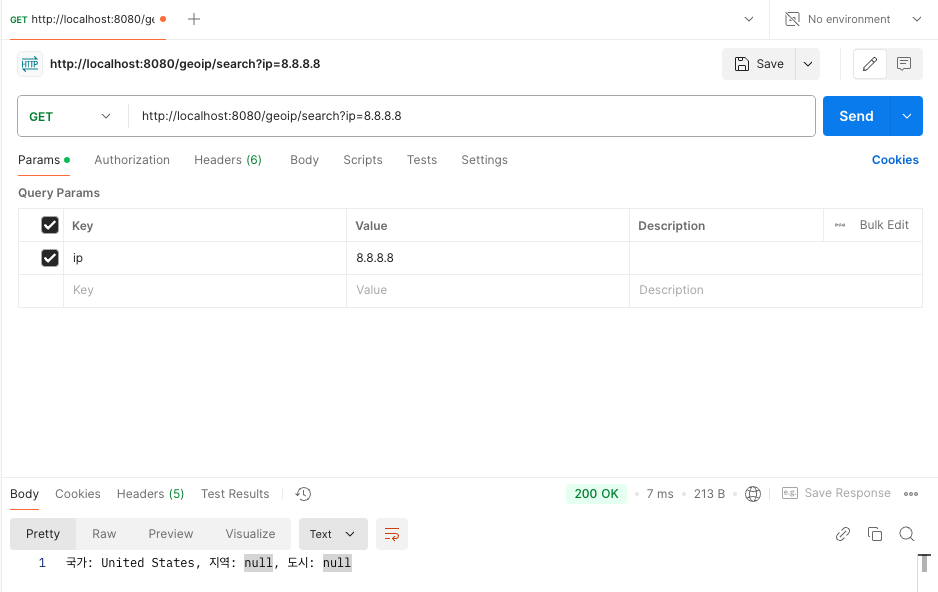 `@RequestParam`으로 쿼리스트링에 있는 ip값을 매핑해서 사용하겠다.